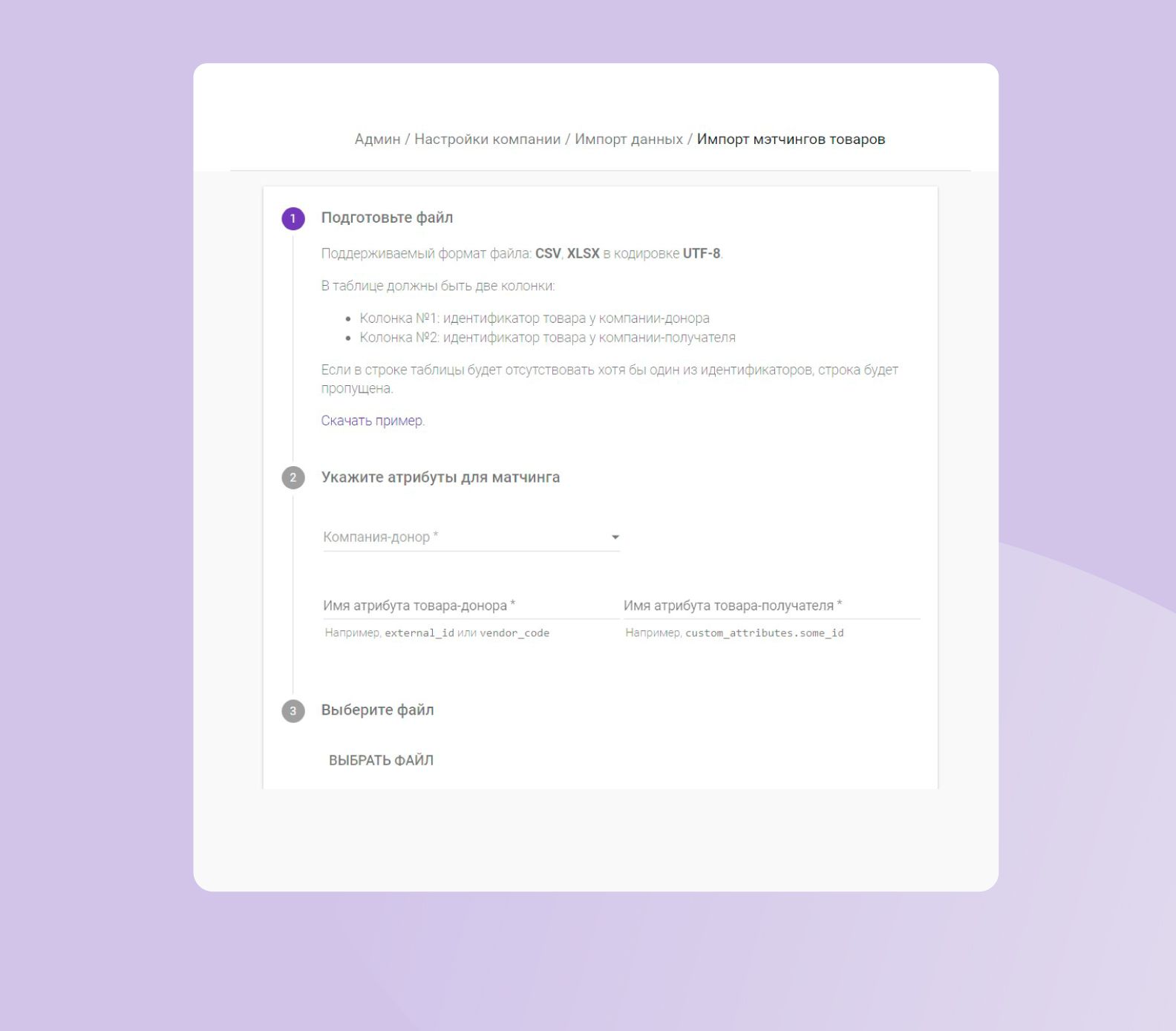 Чаще всего сопоставление или “мэтчинг” товаров берут на себя наши сотрудники. Однако вы можете сопоставить товары вручную или загрузить файл с готовыми мэтчингами.
