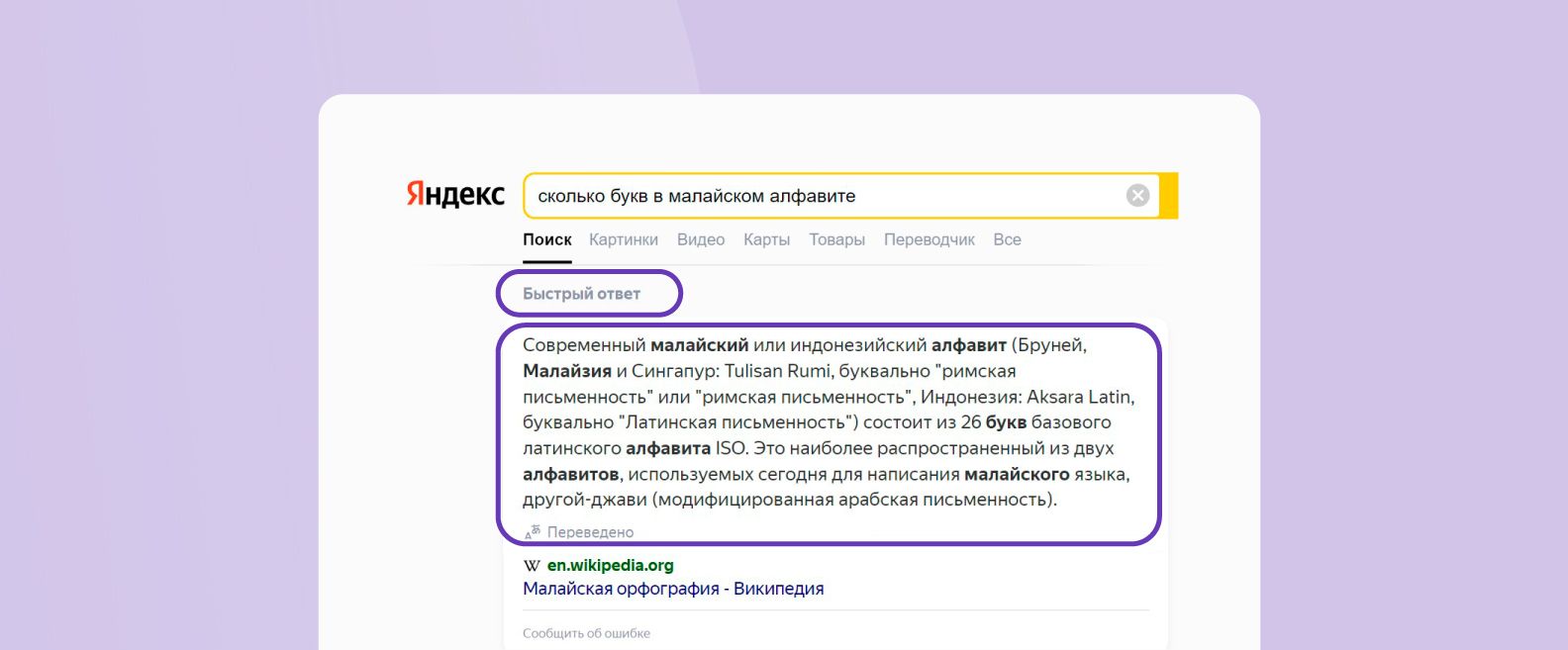 Расширенный сниппет в Google и Яндексе может включать развернутое описание. Это случается если сайт оказывается на первом месте в поисковой выдаче по пользовательскому запросу, а в контенте страницы есть прямой и четкий ответ на этот запрос.