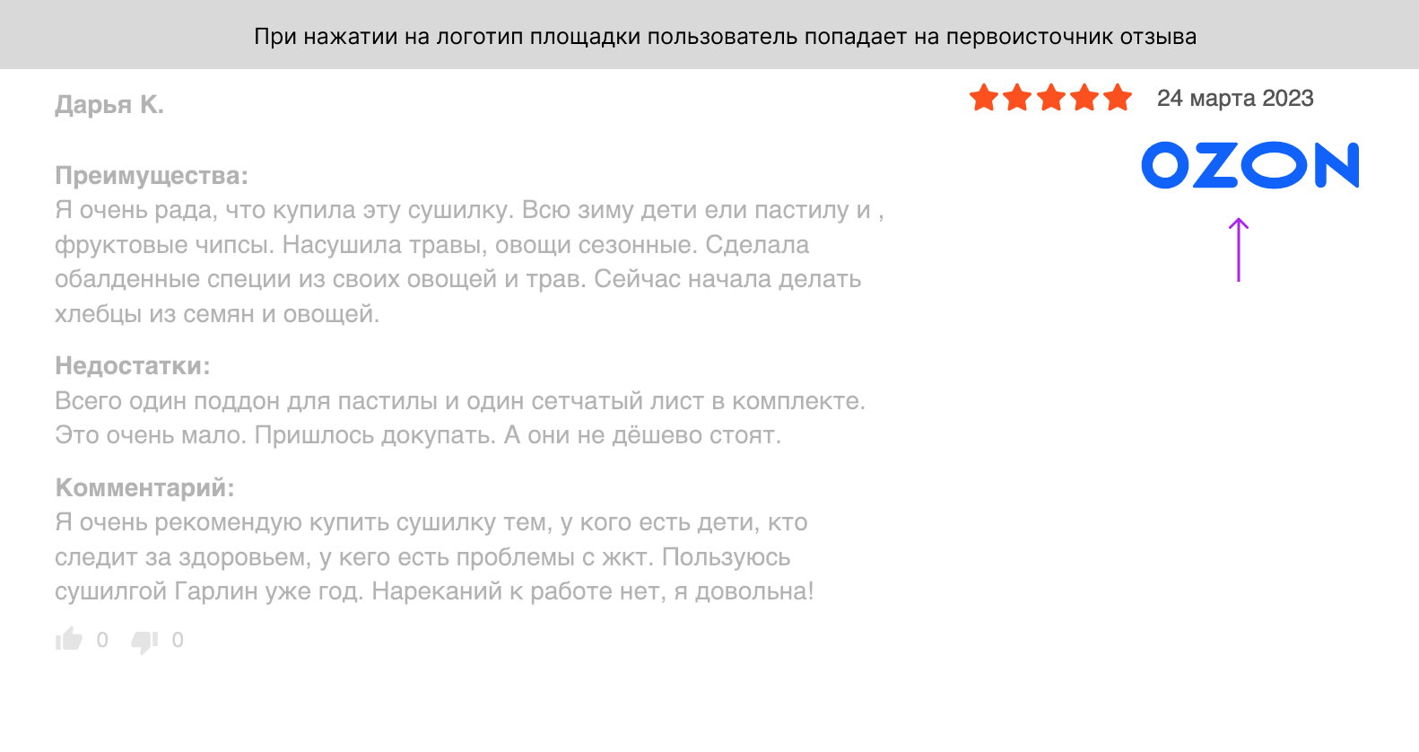В виджетах теперь доступна возможность добавления ссылки на карточку товара, из которой был агрегирован отзыв. Покупателям стало еще проще попасть на первоисточник отзыва и убедиться в достоверности контента.