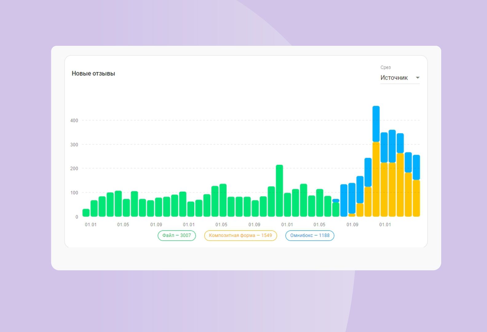За период с августа 2021 по апрель 2022 было собрано более 6 тыс. отзывов. Количество собранных отзывов выросло в 2,4 раза по сравнению с аналогичным периодом годом ранее.