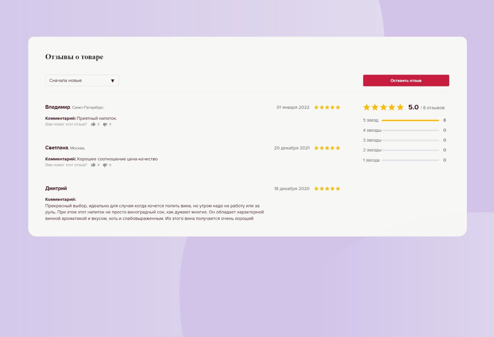 В планах компании – сделать проект по геймификации: выводить в карточке товара оценки оттенков вкуса напитка, собранные с помощью дополнительных шкал в форме сбора отзывов от покупателей, которые уже попробовали продукт. С учетом ограничений по продвижению алкогольной продукции, в компании считают важным работать с уже пришедшим трафиком, вовлекать покупателей в создание пользовательского контента, собирать контакты для персонализированных обращений.