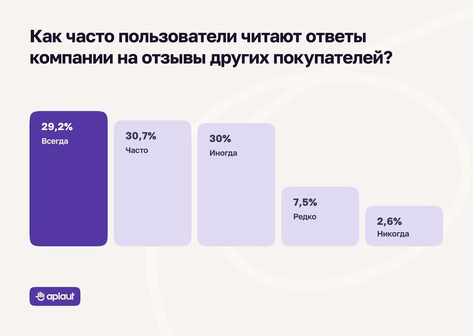 Со временем покупатели уже не ищут в отзывах одни плюсы. Для них становится важнее то, как бренд ведёт себя в проблемных ситуациях. Пользователи хотят знать, как поведет себя бренд, если что-то пойдёт не так. Как продавец реагирует на жалобы и готов ли он идти навстречу.