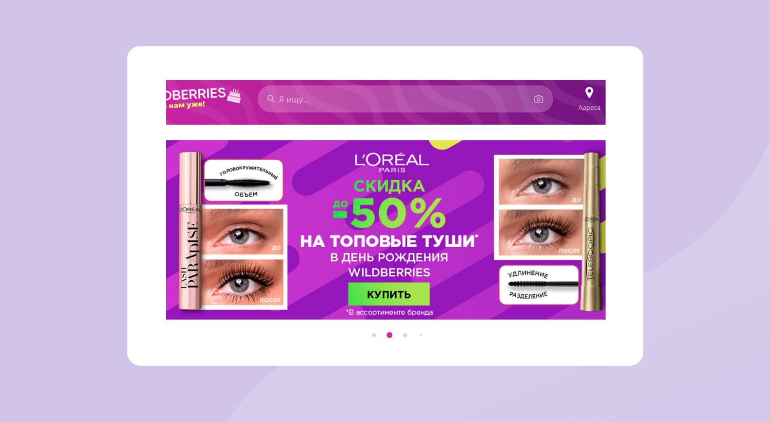 Информацию о скидках и акциях, эксклюзивных предложениях и распродажах размещайте на сайте так, чтобы ее невозможно было не заметить. Идеальное место — на крупном баннере под строкой поиска. Хорошо если там также будет выделенный цветом призыв к действию («Купить сейчас», «Хочу скидку» и т.п.).