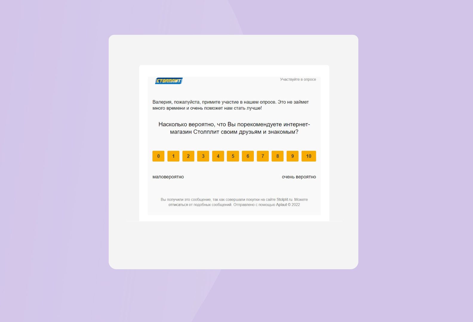 В частности, очень удобно проводить опросы с помощью платформы Aplaut: там можно не только быстро создать сам опрос, но и настроить триггерные рассылки и аналитику, не прибегая к использованию дополнительных сервисов и инструментов.
