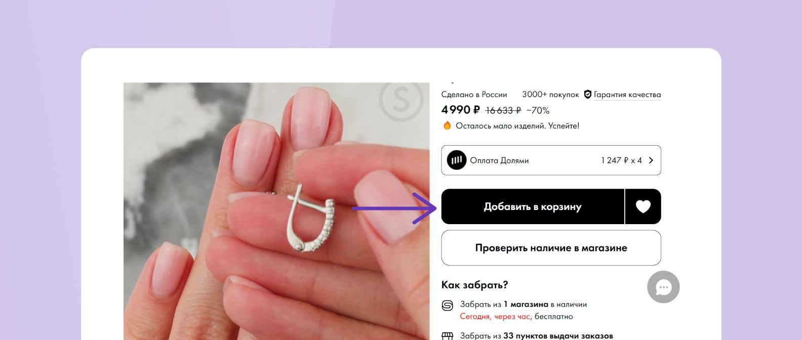 Призыв к действию на кнопке в идеале точно отражает то действие, которое произойдет после клика. Так, если пользователь попадет на страницу оформления заказа — подходит СТА «Купить», если же он останется на странице, а товар попадет в корзину — то более логичным будет СТА «Добавить в корзину»…