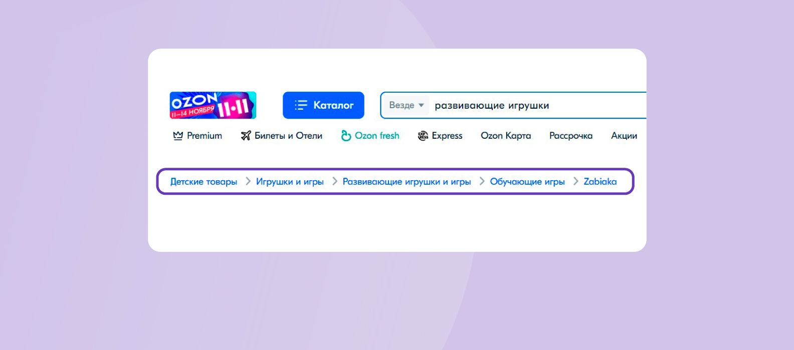 Так называют навигационную цепочку — путь, которые покупатель проходит от главной страницы сайта до конкретной товарной карточки.