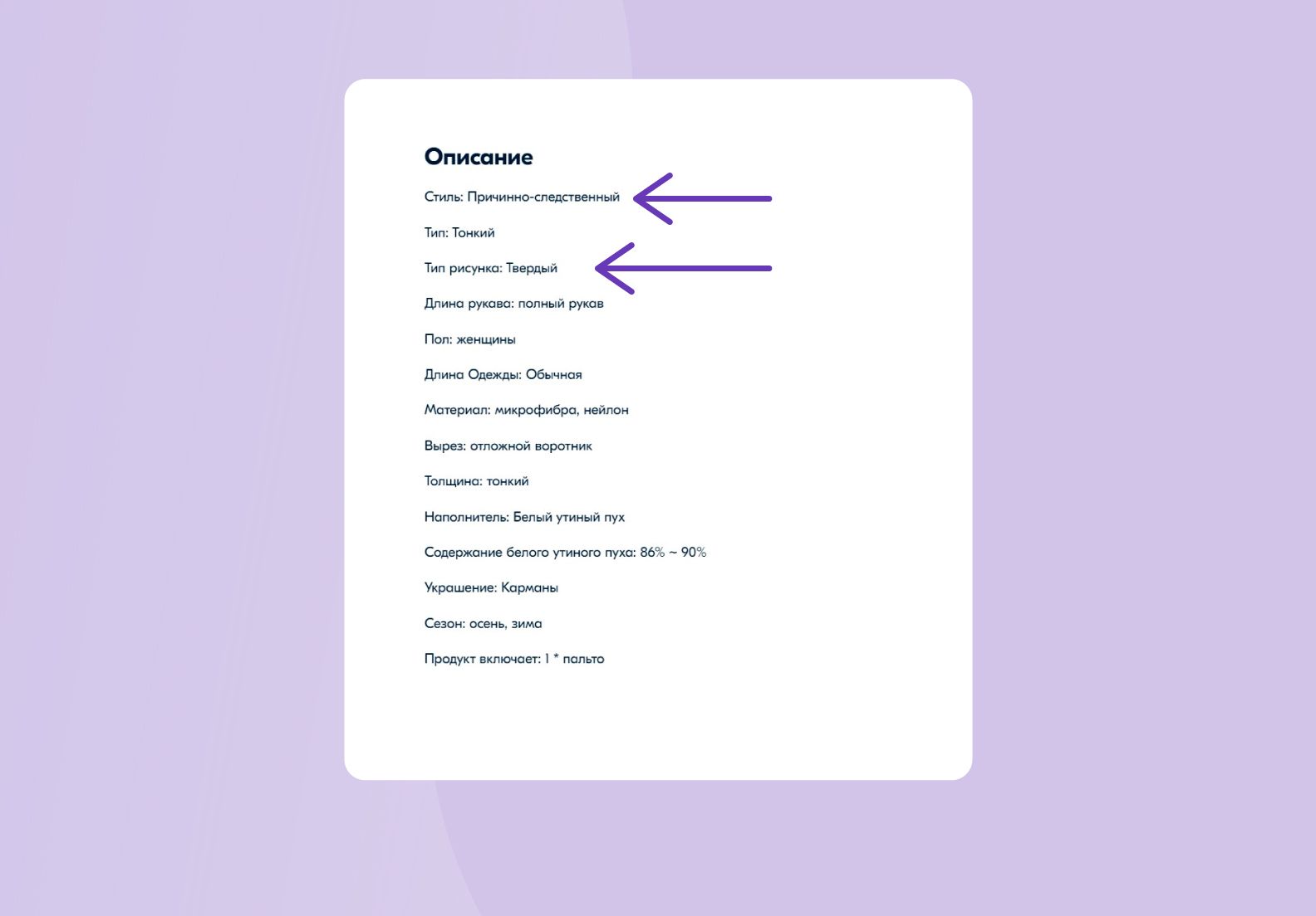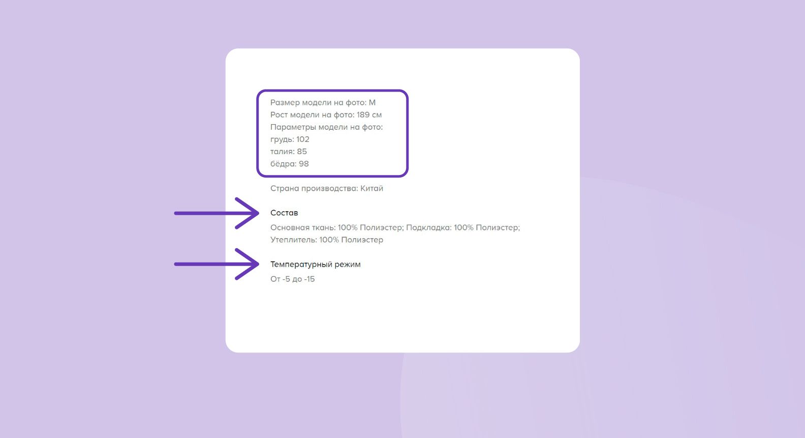 Основные блоки продающей товарной карточки — характеристики и описание товара. Подход к наполнению этих блоков контентом принципиально отличается.