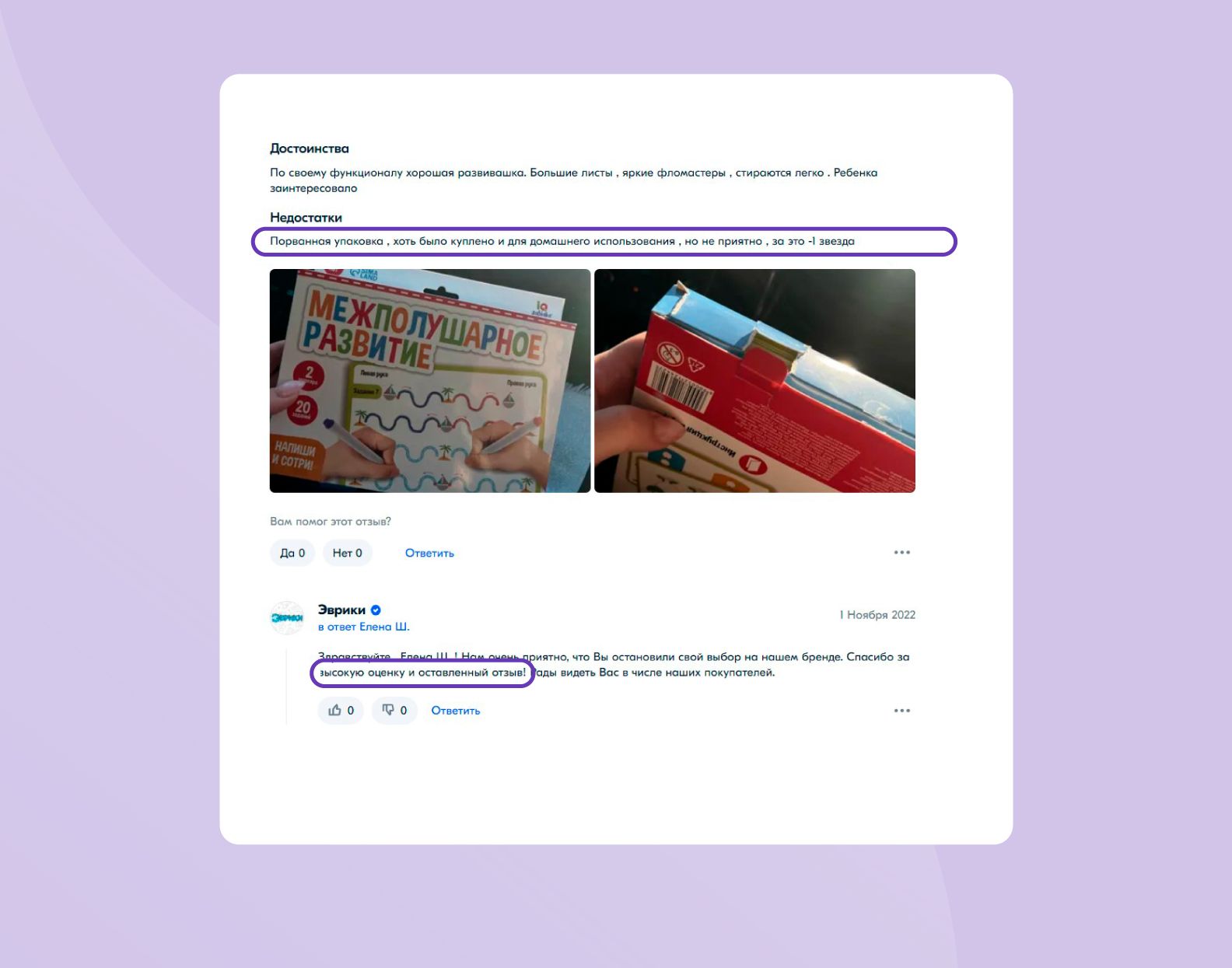 Но чтобы отзывы приносили пользу требуется внимание — отписки или автоматические ответы на отзывы не добавят компании-продавцу очков в глазах покупателя.