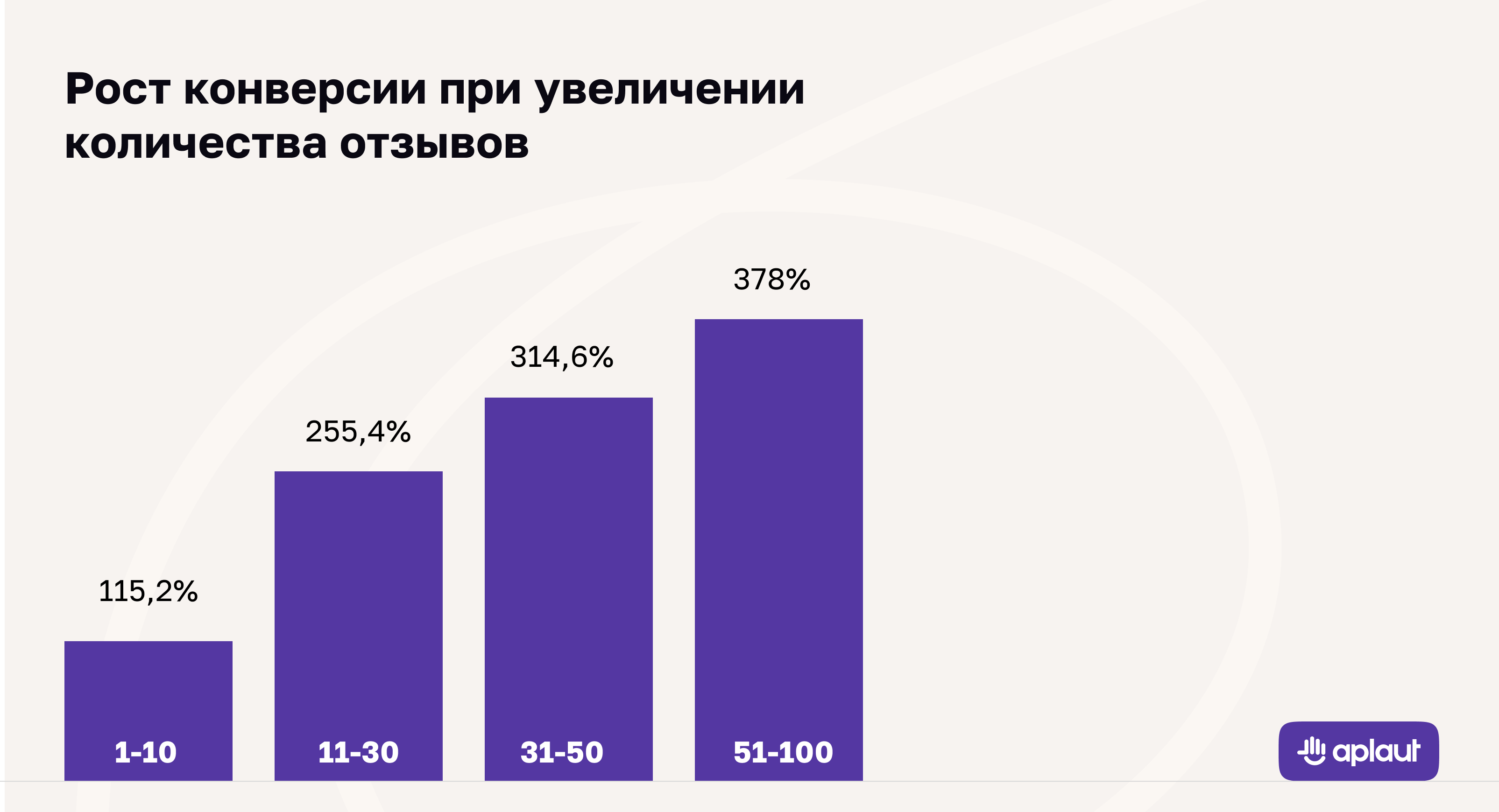 Один отзыв лучше, чем его отсутствие, но ещё эффективнее, когда отзывов больше 50 — это значительно усиливает доверие к продукту. Согласно исследованию от Powerreviews, чтобы добиться максимальной конверсии, продавцам электроники выгодно заполучить на страницу товара более 50 отзывов.
