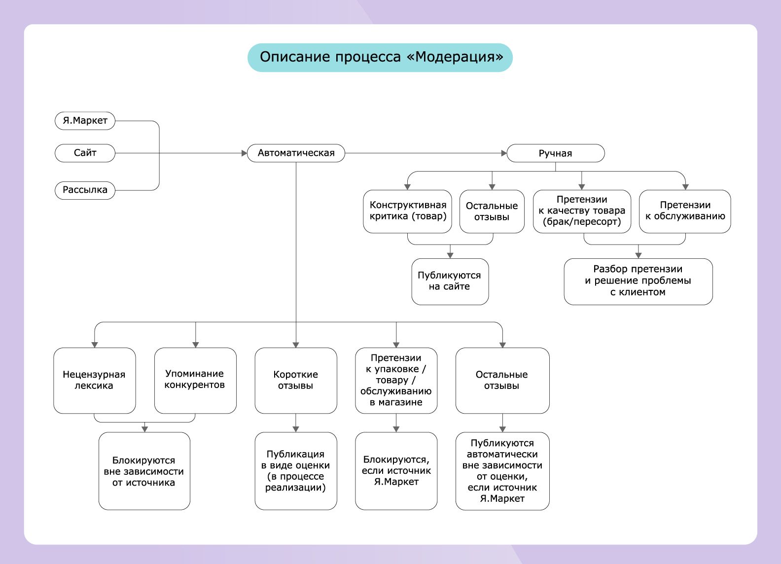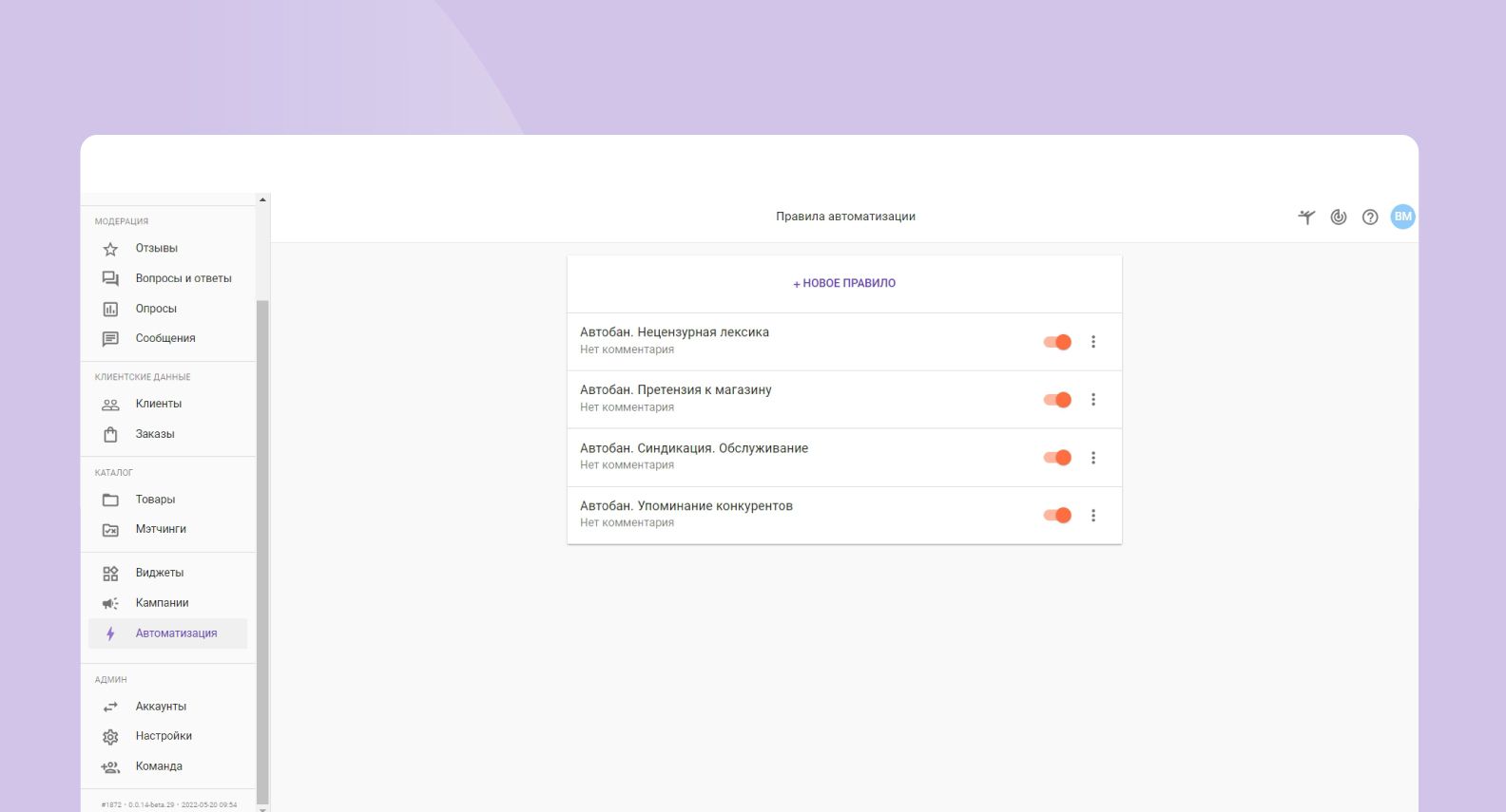 Для отзывов из форм на сайте и рассылок также настроили правила автоматической модерации на основе ключевых слов: нецензурная лексика, оценка обслуживания магазина в большей степени, чем оценка товара.