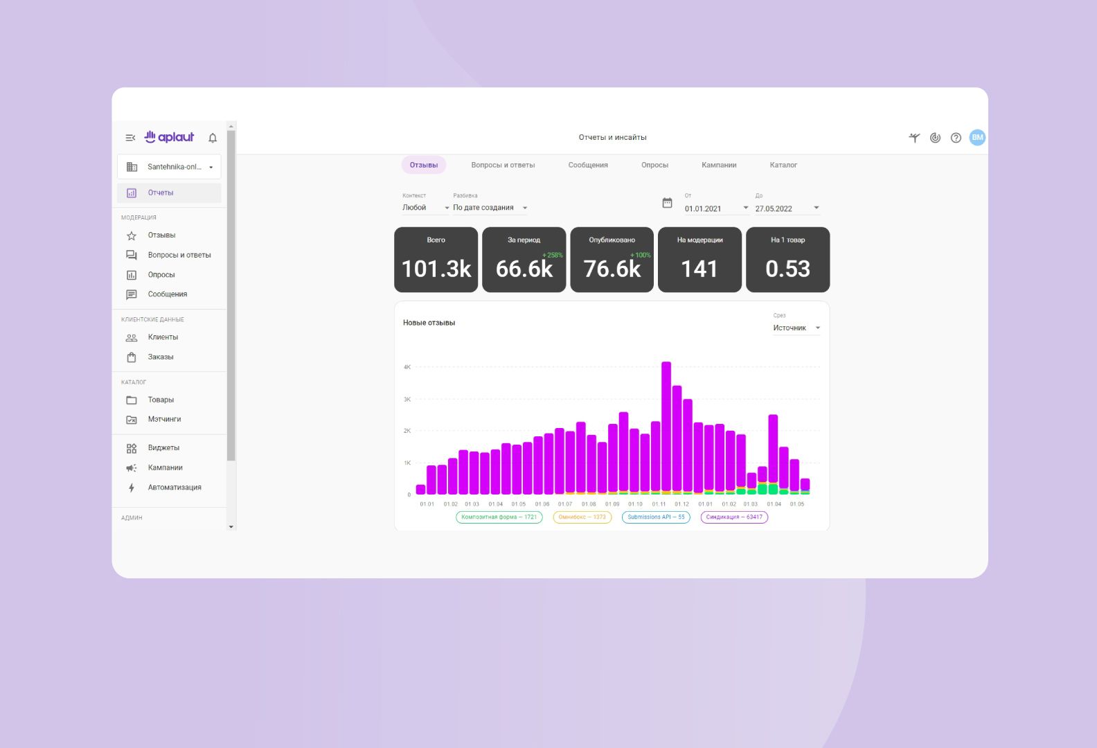 Раньше в «Сантехнике-Онлайн» рассматривали отзывы только как инструмент для управления репутацией компании. Когда появился запрос на работу с отзывами о товарах, менеджмент выбрал Aplaut как наиболее оптимальное решение. Вместе мы выстроили работу с отзывами о товарах с нуля, добились значительных результатов и продолжаем совершенствовать систему, внедряя новый функционал. Рассказываем все в подробностях и с цифрами в нашем кейсе.