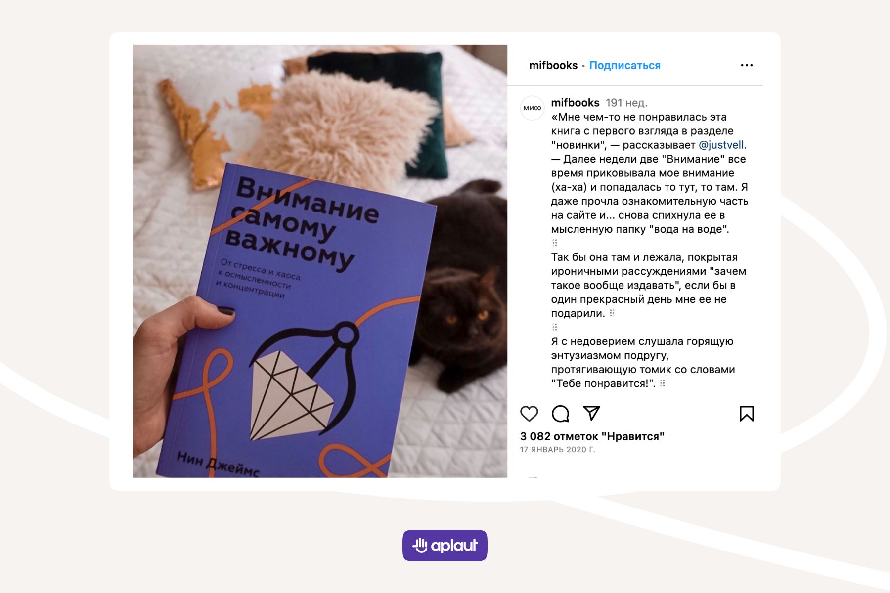 Издательство МИФ активно использует отзывы своих покупателей для того, чтобы рекламировать книжные новинки в соцсетях.