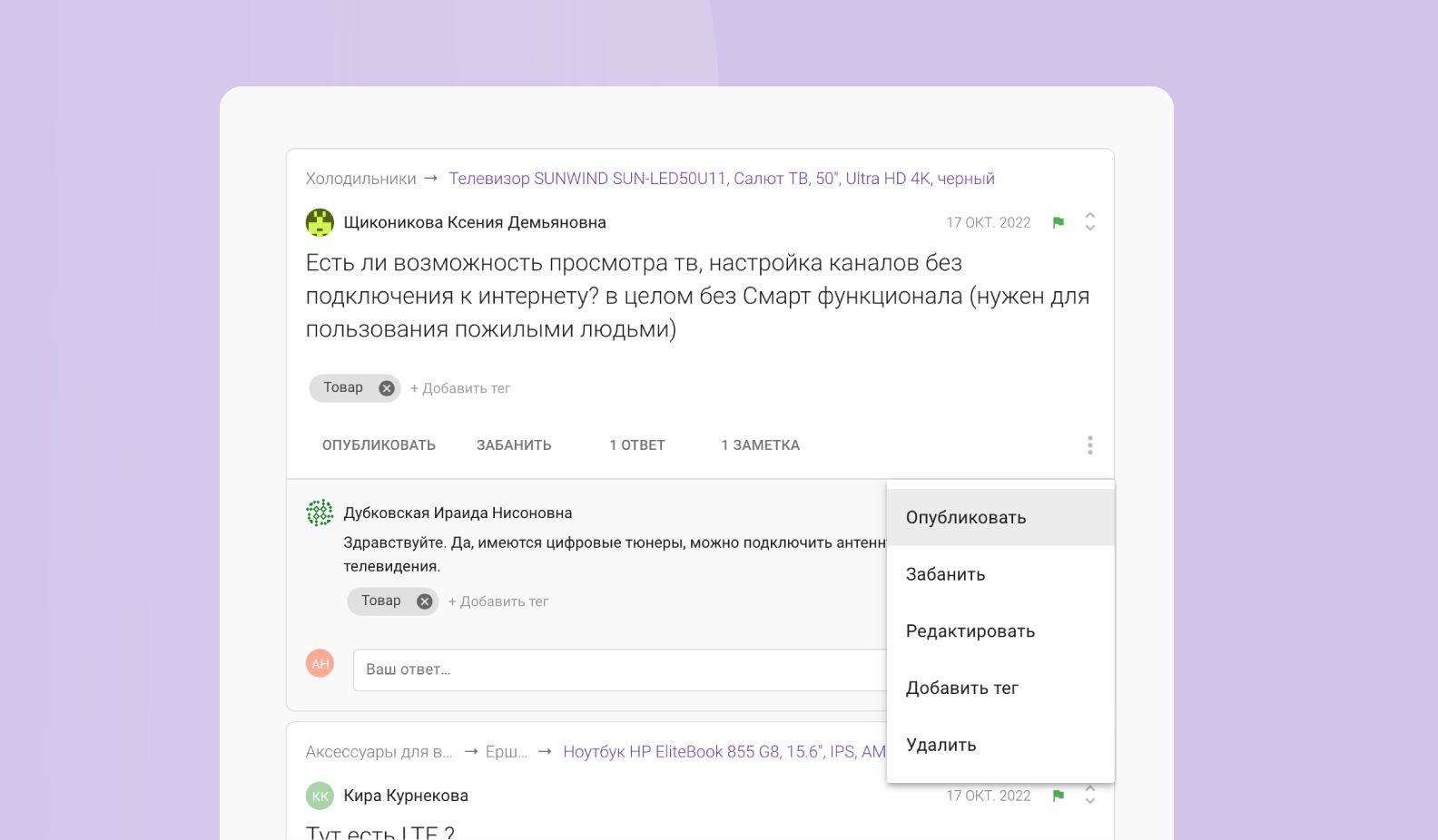 Теперь на платформе тегировать можно не только отзывы и вопросы, но и ответы к вопросам.
