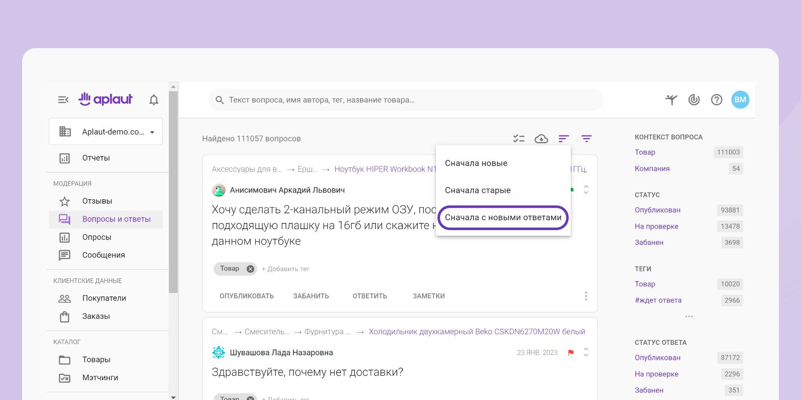 Обновления платформы Aplaut: расширение возможностей кабинета вендора и сортировка вопросов покупателей по дате ответов