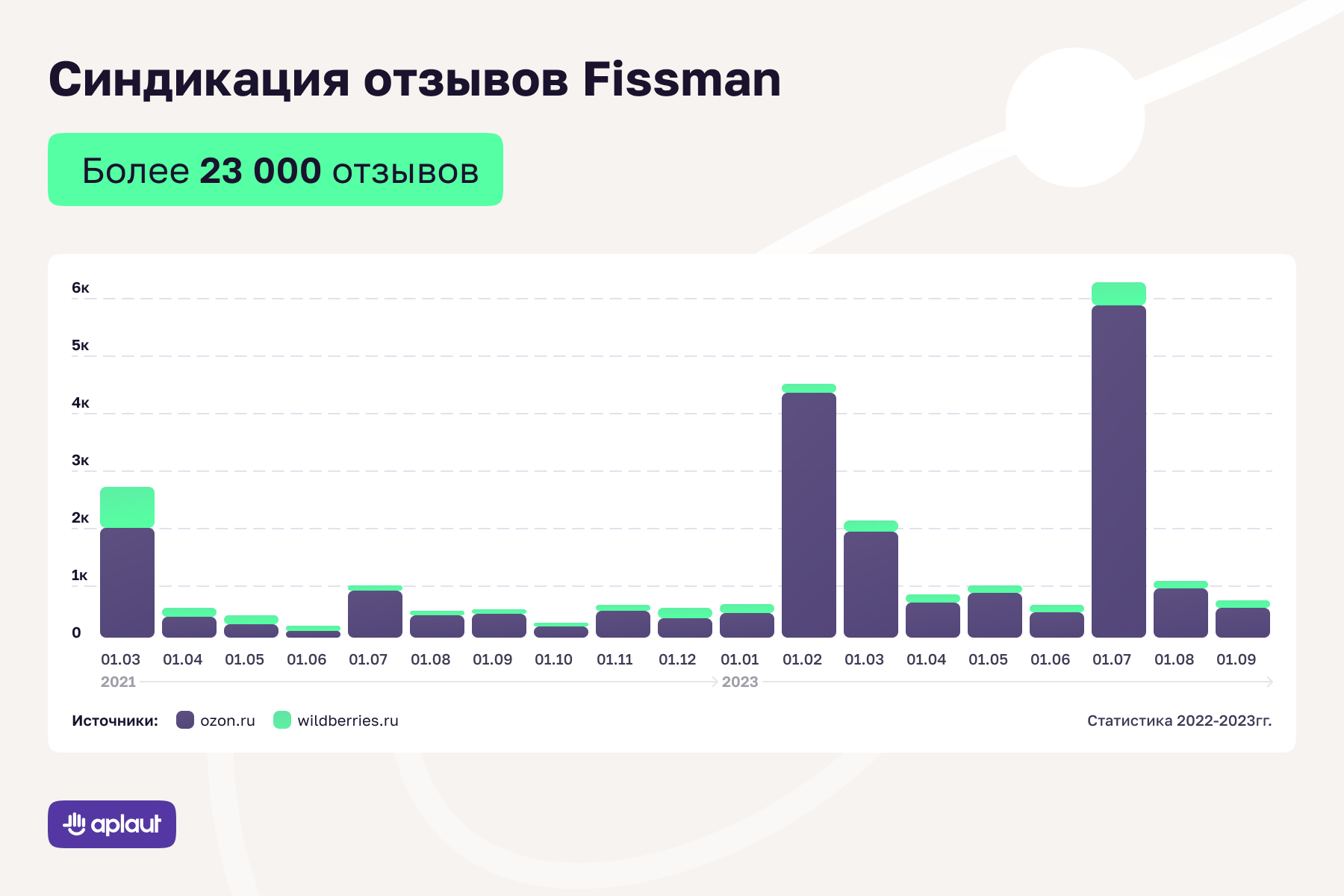 Компания подключилась к Aplaut в марте 2022 года, чтобы закрыть потребность сбора отзывов с других площадок. Fissman использует синдикацию отзывов, и за это время бренд собрал более 23 тыс. отзывов.