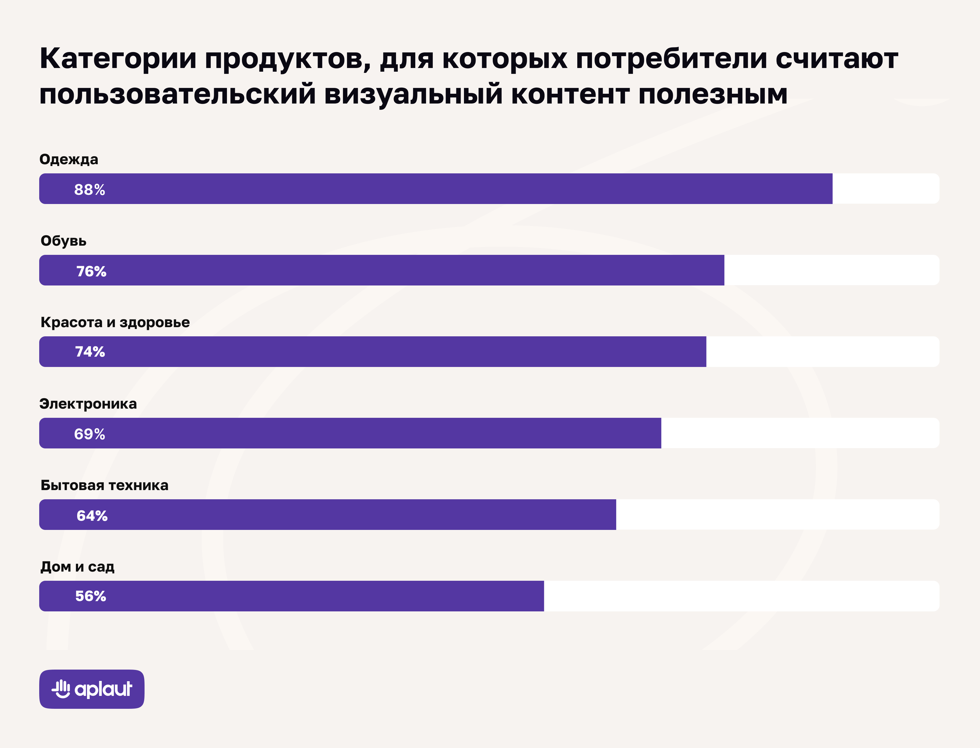 Потребители высоко ценят пользовательские фотографии для любых товаров, но для некоторых категорий визуал предсказуемо важнее, чем для других. Например, для одежды и обуви.