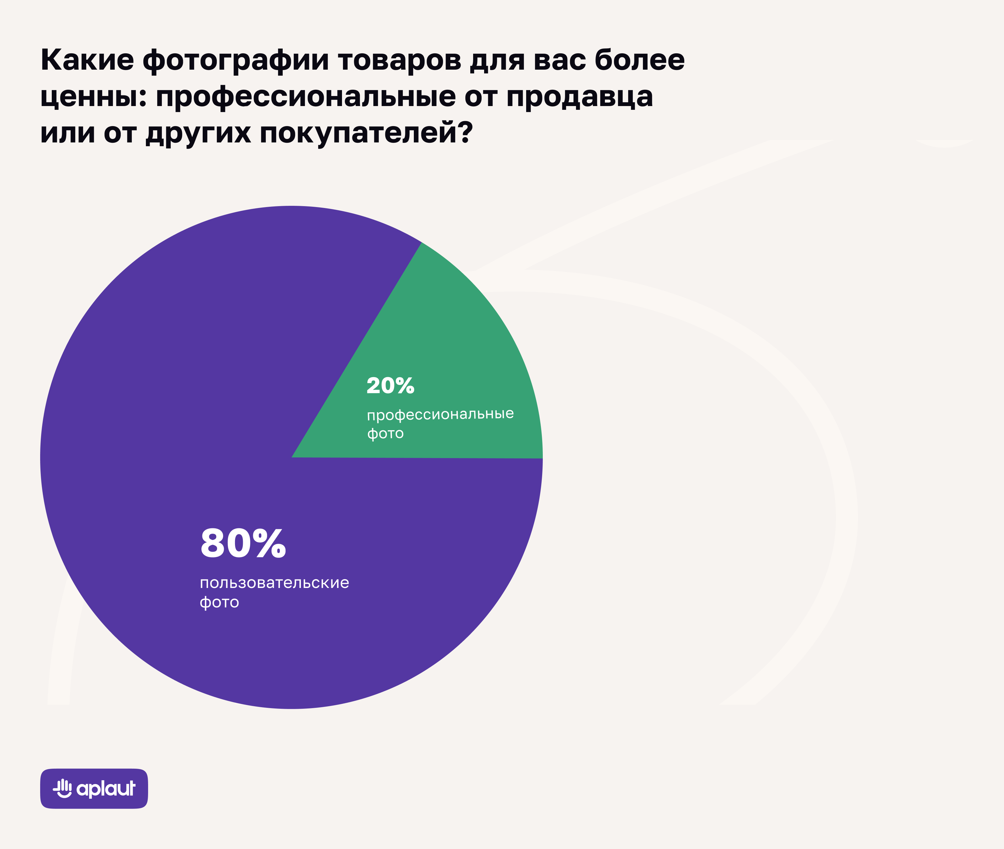 Если выбирать между студийным фото от продавца в карточке товара и простым пользовательским фото, то последнее выберут в 80% случаев.