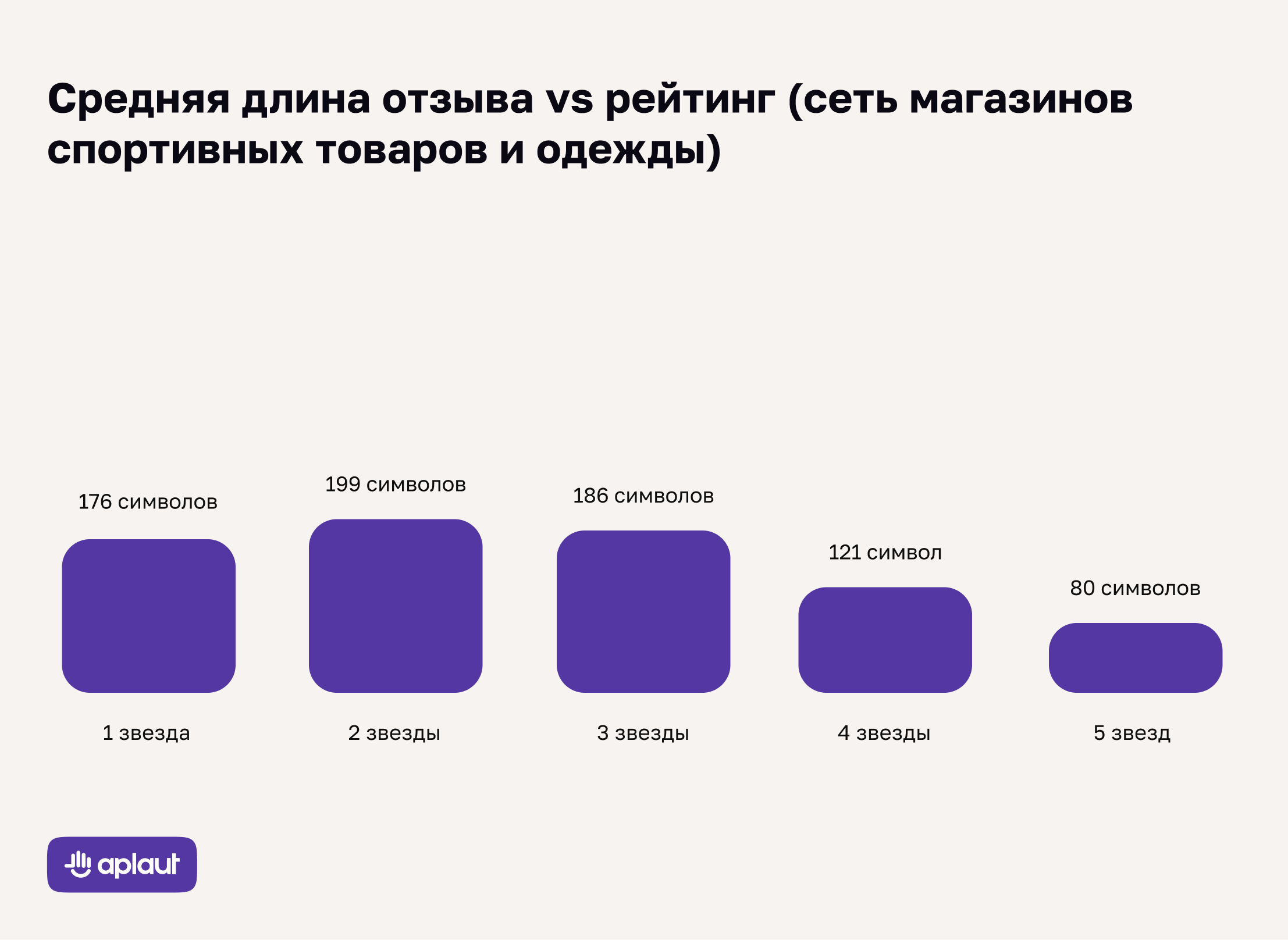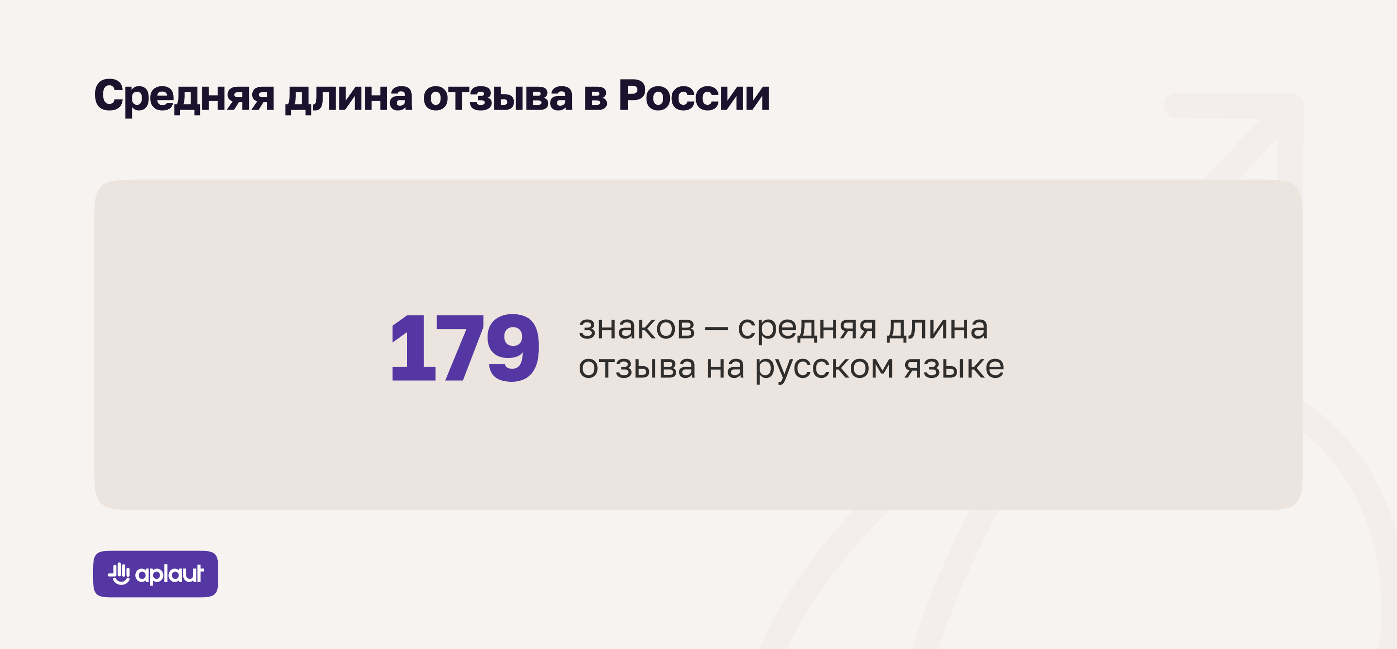 Мы выяснили: средний отзыв в России — 179 символа. Немного, учитывая, что полезными чаще считают 400+ символов.