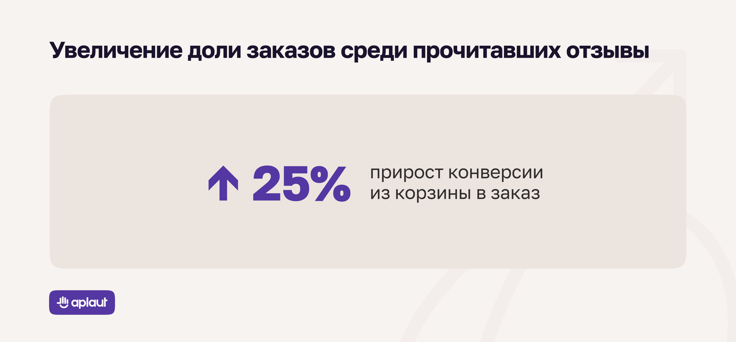 Мы покопались в данных и выяснили: чтение отзывов повышает вероятность оформления заказа на 25% среди тех, кто добавил товар в корзину.