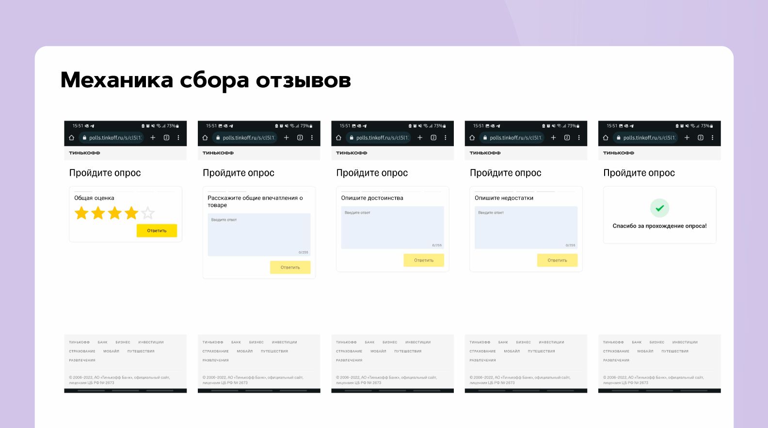 Предложение оставить отзыв после покупки отправляется с помощью push-уведомлений в приложении Tinkoff с охватом аудитории 25 млн реальных пользователей.