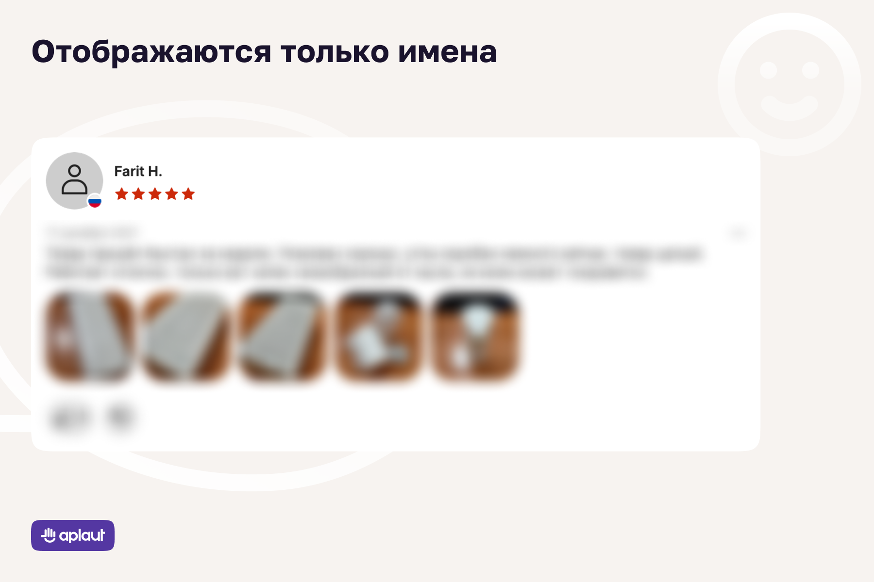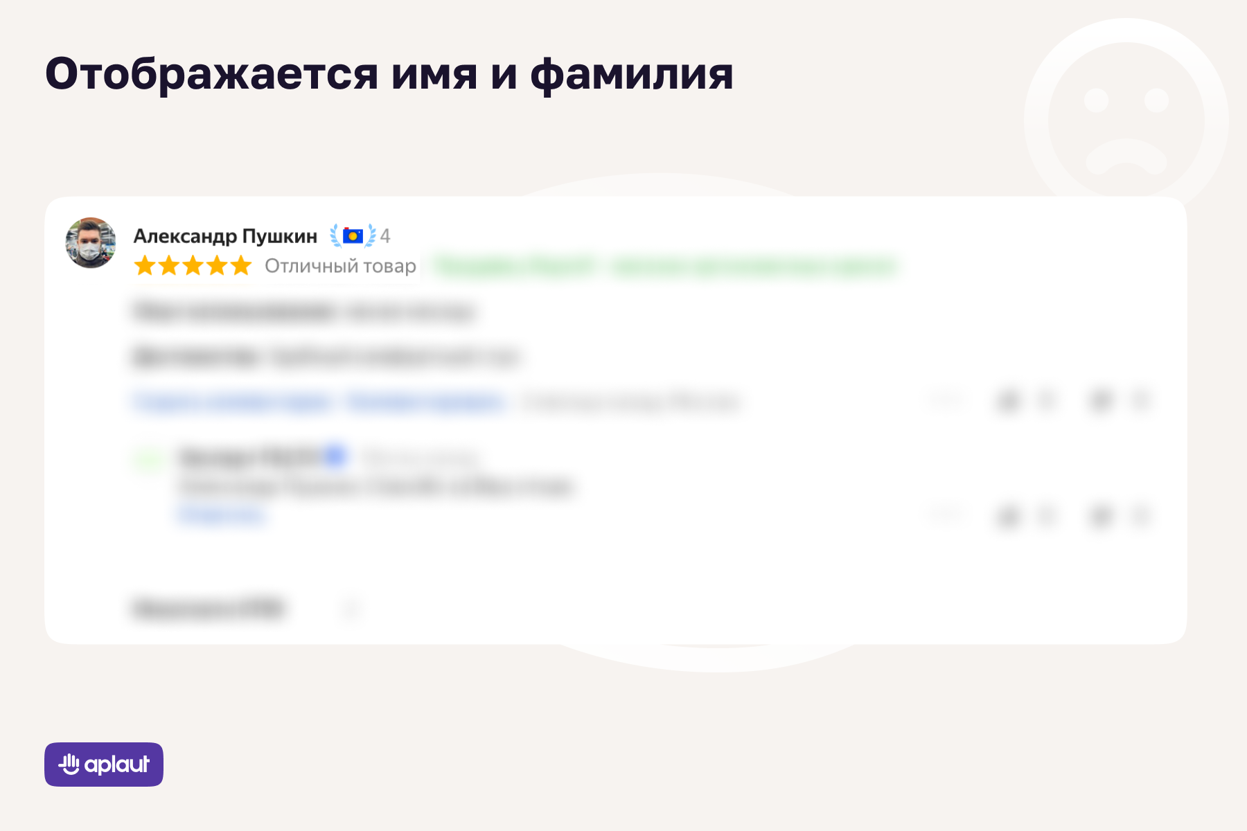 С точки зрения регулятора, персональные данные могут храниться в базе таким образом, чтобы самих пользователей нельзя было идентифицировать. Но с точки зрения покупателей, которые читают отзывы, отсутствие личной информации приводит к снижению доверия: покупатель из Челябинска подсознательно больше доверяет такому же автору из Челябинска. И желательно, чтобы у него было имя. Чтобы разрешить этот парадокс, мы предлагаем следующие меры: